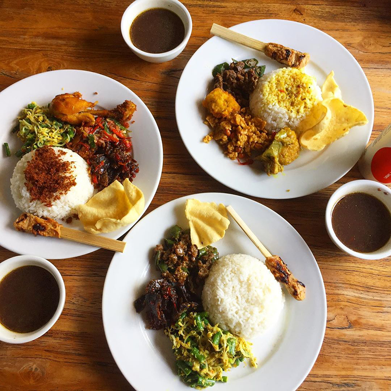 “Salah satu nasi campur terenak di Bali. Dendeng daging dan peyek udangnya favorit banget. Tempatnya juga nyaman dan bersih.”